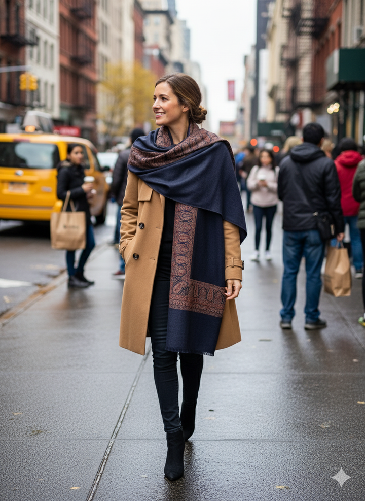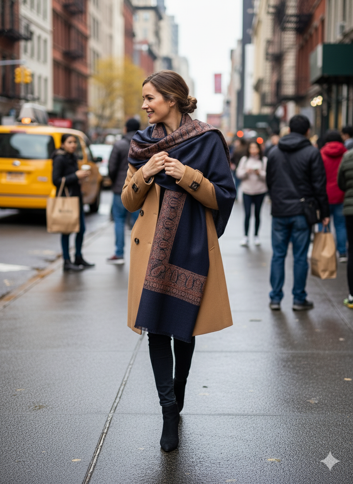This Black Jamawar Shawl features a rich artisanal finish, showcasing masterful weaving on soft wool blend fabric. Its deep black tone makes it a versatile piece, while the detailed patterns add character. Perfect for enhancing both casual and formal looks with heritage-inspired style.