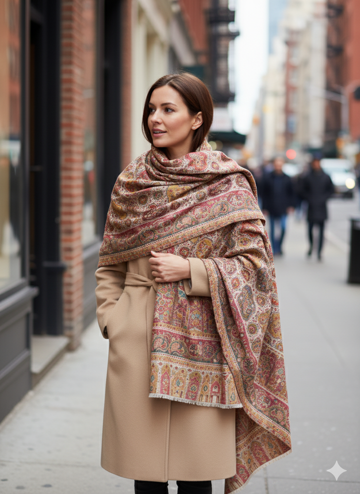 Breezy yet refined, this Lightweight Wool Shawl with Subtle Design in Beige is made for effortless layering. The soft wool blend provides cozy warmth without added weight, while the understated design adds just a hint of visual intrigue. The beige hue complements a wide range of outfits and occasions, from casual wear to relaxed formal settings. With a fluid drape and breathable texture, this piece is a wardrobe staple that brings quiet elegance to your look.