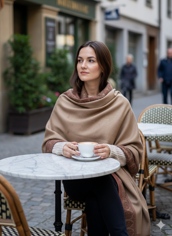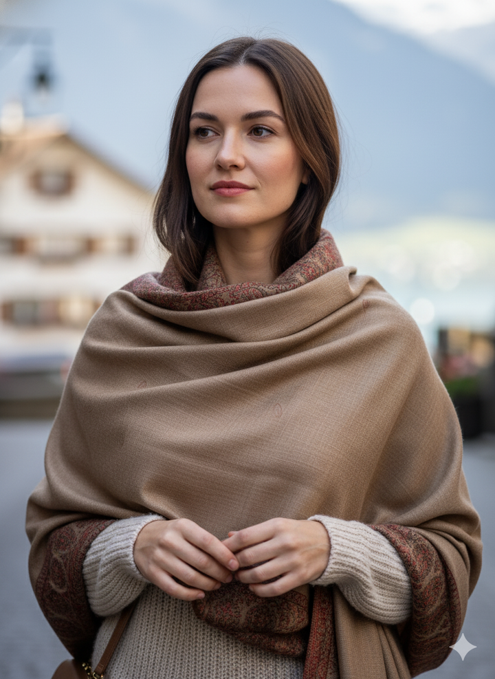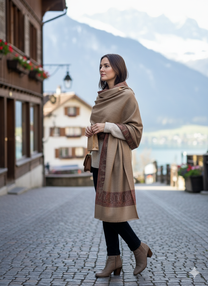 Luxurious Light Brown Jamawar Shawl with Classic Motif