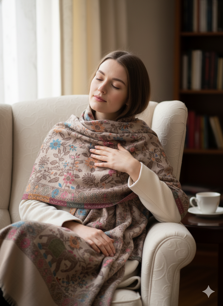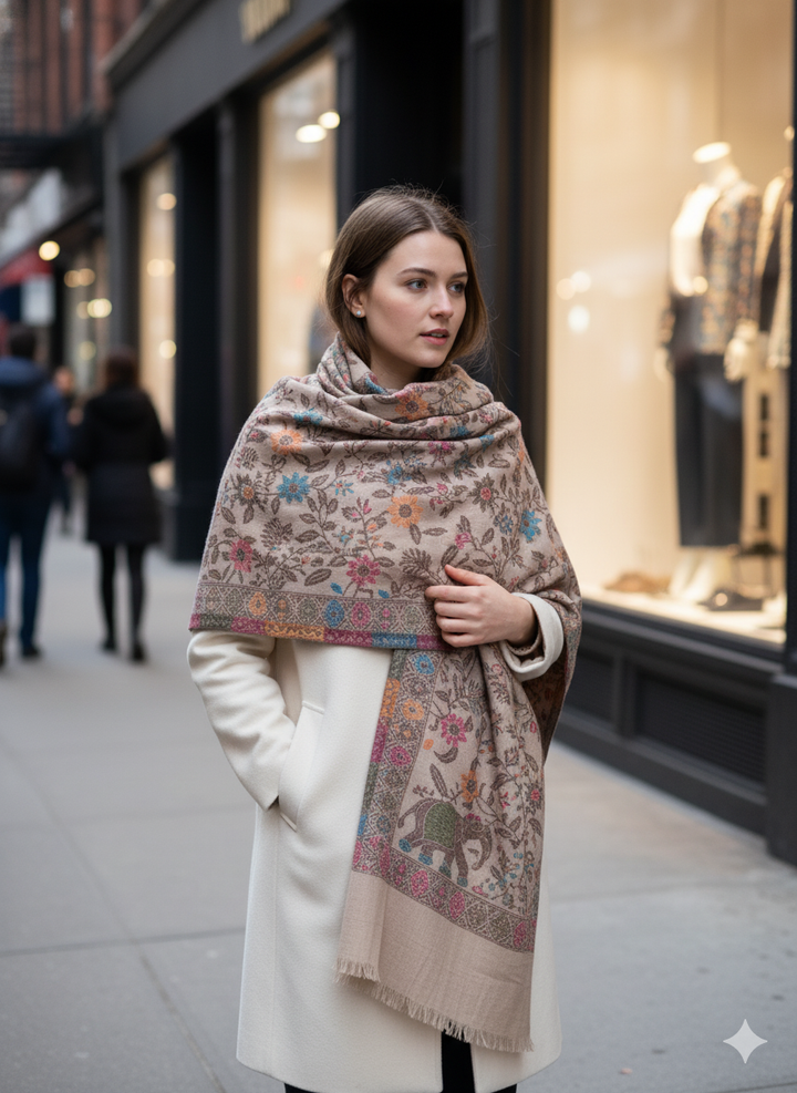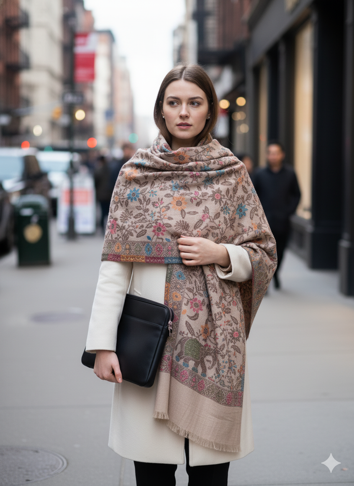 Elegant and subtle, this Soft Grey Jamawar Stole is woven with refined motifs on a fine wool blend. Its gentle grey tone and sophisticated design provide a graceful accessory suitable for any occasion.